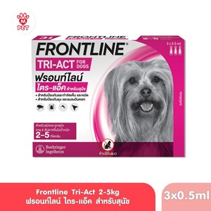 ฟรอนท์ไลน์ไตร-แอ็ค สำหรับสุนัข ขนาด 2 - 5 กิโล ผลิตภัณฑ์รูปแบบหยดหลัง พลังกำจัดเห็บหมัดและไล่ยุงในหลอดเดียว นวัตกรรมผลิตภัณฑ์ใหม่แบบหยดที่รวม 2 คนยา (FIPRONIL + PERMETHRIN) ให้ประสิทธิภาพทั้งการออกฤทธิ์กำจัดและป้องกันยุง เห็บ ติดตามอย่างต่อเนื่องทั้งเดือนสำหรับสุนัขโดยเฉพาะ