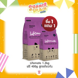 Lifemate อาหารสำหรับแมวเลี้ยงในบ้าน 1.3 กก. (แถมฟรีขนาด 400 กรัม)