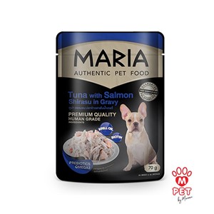มาเรีย อาหารสุนัข สูตรทูน่า แซลมอน ปลาข้าวสารในน้ำเกรวี่ 70กรัม