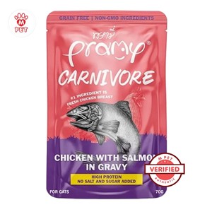 Pramy Carnivore พรามี่ คาร์นิวอร์ อาหารเปียกแมว ไก่กับแซลมอนในเกรวี่ 70g.